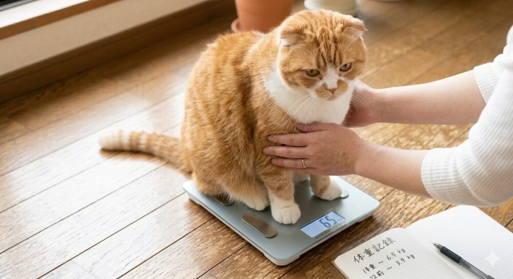 • 目安は月に体重の3〜5%減を目指す(例:5kg猫なら月150〜250g)